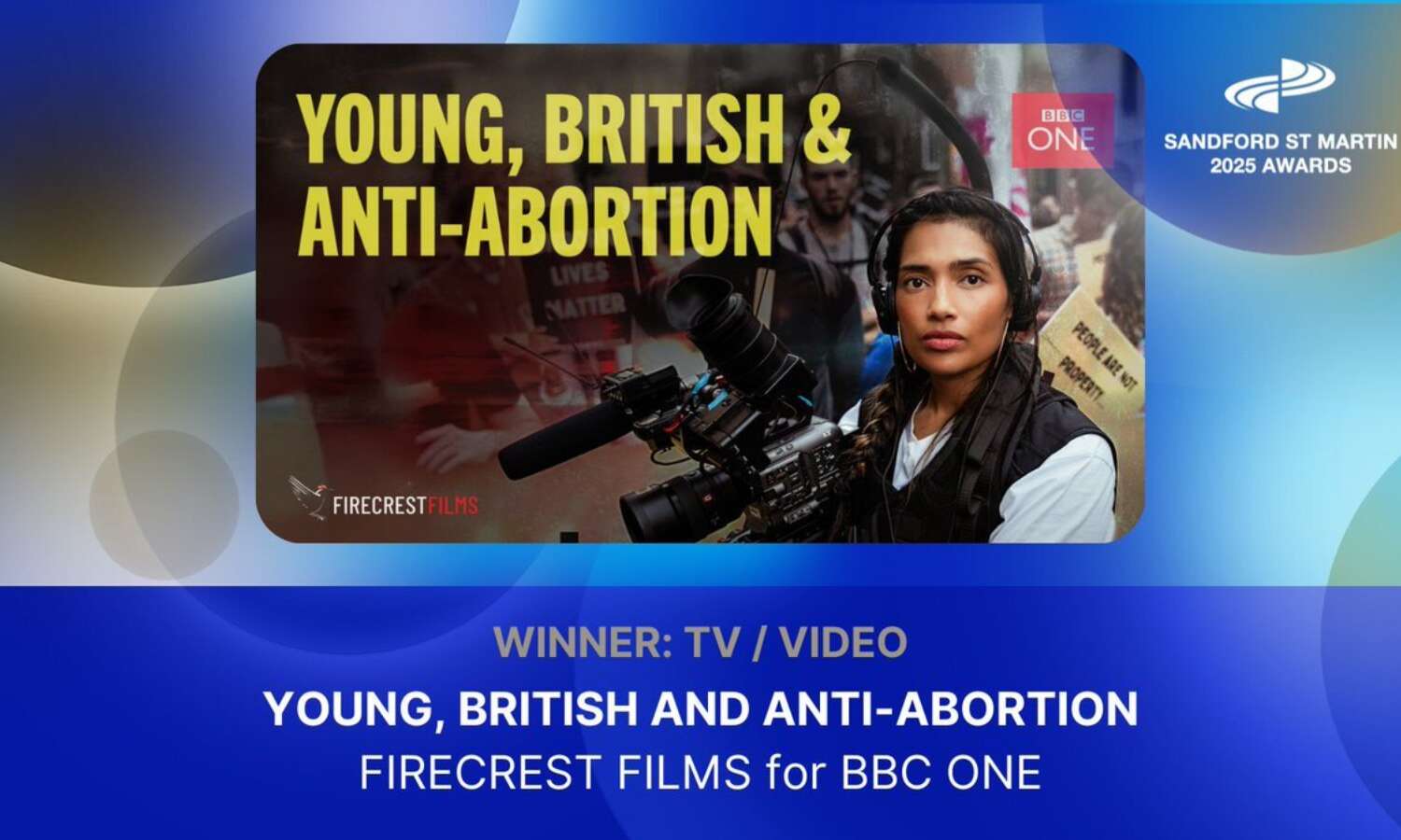 Young, British and Anti-Abortion won the 2025 Sanford St Martin TV Award, which showcases excellence in content engaging with religion and belief.